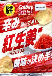 紅生姜は過去には「紅しょうが天」として採り上げられたことがありますが、単なる「紅生姜味」は私が知る限りは初めてです。