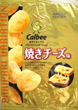 (右)こんがり焼いたチーズの美味しさをポテトチップスにしました。コクのあるチーズに香ばしさが加わった絶妙な味わいです。