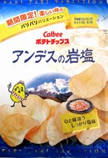 (右)南米・アンデス山脈で採掘された岩塩を使ったポテトチップスです。コク深く、しっかりとした塩味が感じられる、ひと味違うおいしさです。